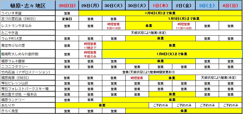 2025.12.24 飯南町内施設 年末年始の営業について 飯南町内施設の年末年始の営業についてまとめております。 お出かけの際にご参考ください! ※一部記載がない施設もございます。 ※都合より変更になっている場合もございますのでご注意ください。
