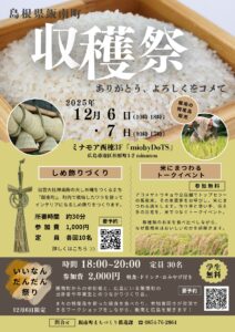 今回は12月6日(土)・7日(日)に「ありがとう、よろしくをコメて」と題しまして島根県飯南町収穫祭を広島県広島駅ビル・ミナモア西棟3F「miobyDoTS」にて開催します!