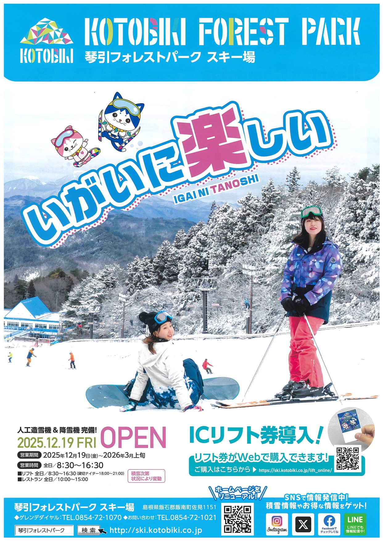 飯南町冬のアクティビティ、琴引フォレストパークスキー場が12月19日(金)よりオープンです!