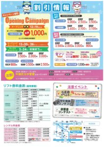 また、12月19日(金)はオープニングキャンペーンとして1日リフト券がな・ん・と“1,000円”!