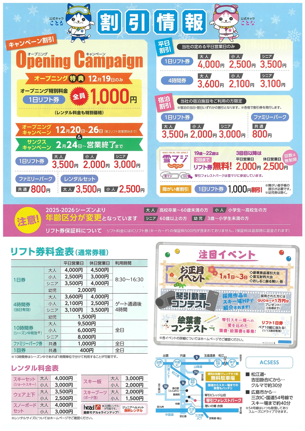 1日リフト券 共通:1,000円(大人・シニア・小人・幼児)